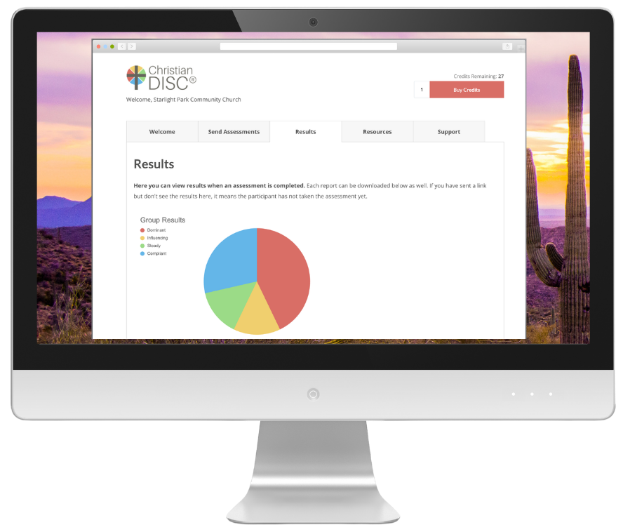 Credits let you send either the Christian DISC® or Classic DISC assessment to your users. They never expire, so you can use them at your own pace. If you expect heavy use, consider our unlimited plans.